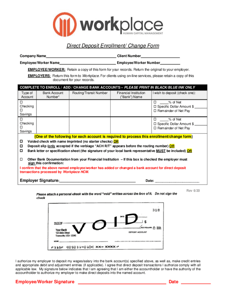Give this form to an employee who requests his final pay delivered by direct deposit to one or more bank accounts.